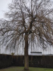 Abattage d’un saule pleureur prenant trop de place dans le jardin. Une opération d’abattage et d’évacuation du bois à Louverné.